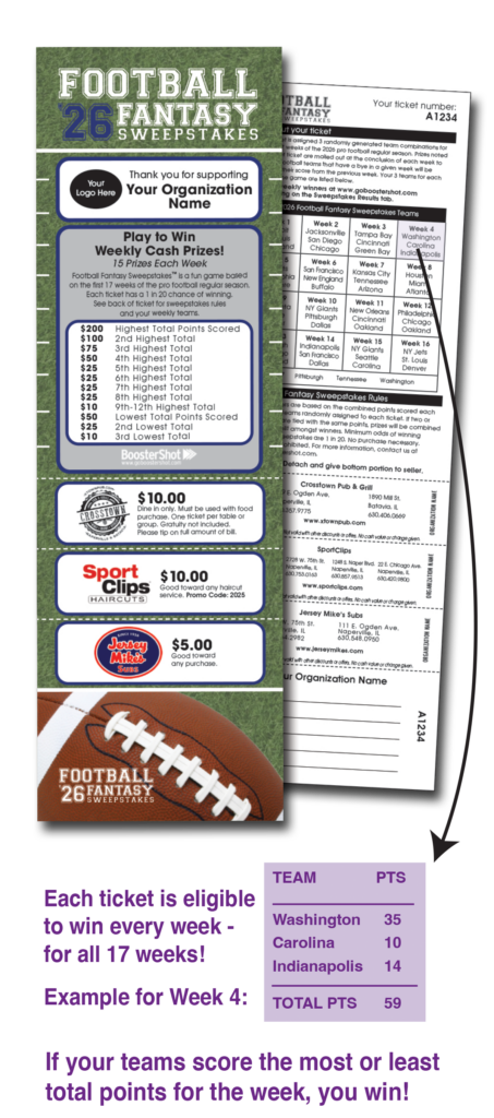 BoosterShot has a variety of Sports Sweepstakes ticket options to choose from, depending on the time of year you are fundraising.