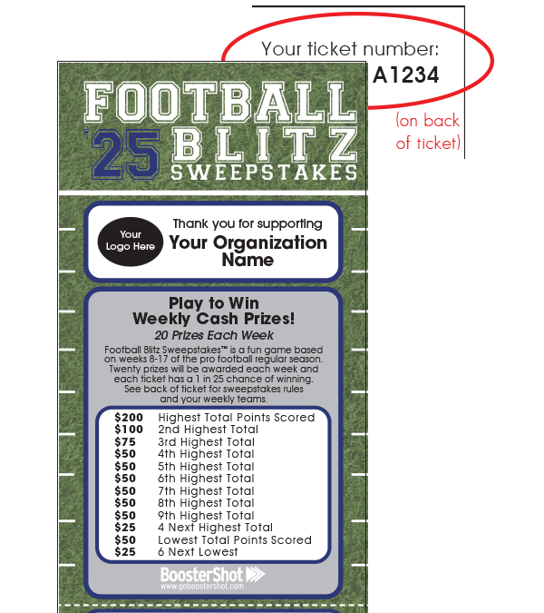 - Weekly winners are based on the combined points scored each week by the three teams randomly assigned to each ticket.